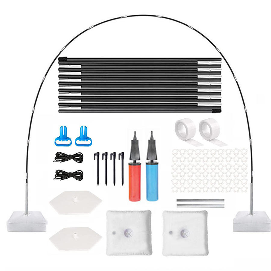 This popular balloon arch stand kit set can be freely assembled and adjusted in height and curvature. It comes with complete tools and is easy to assemble. Paired with a water-filled base, it is very stable and suitable for indoor and outdoor use. It is also suitable for decorations at various parties such as birthdays, weddings, and opening ceremonies.