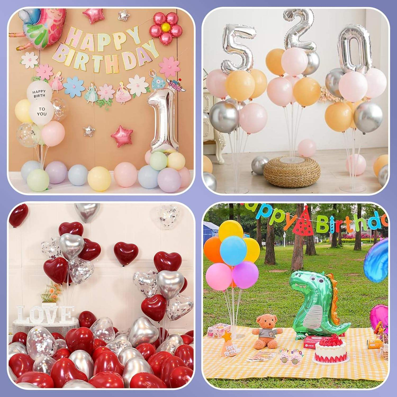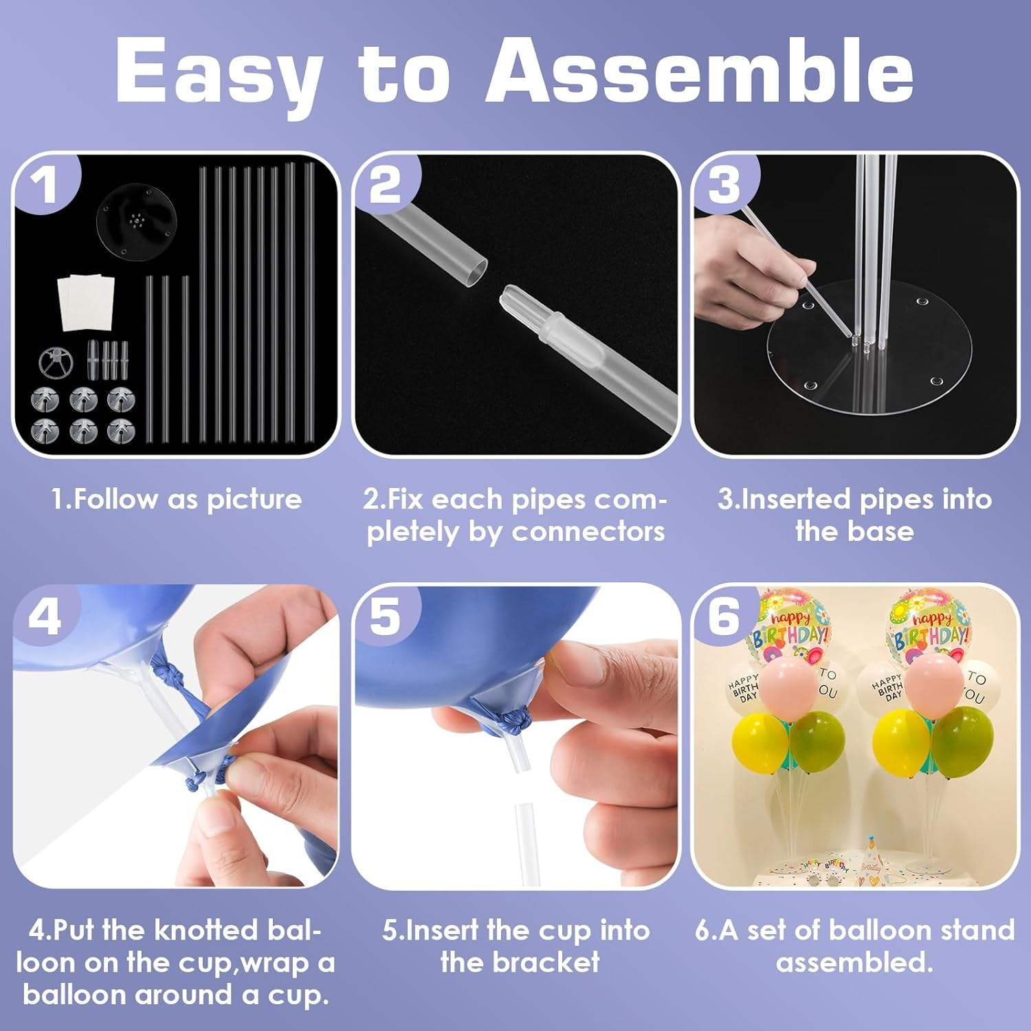 This balloon stand kit clear balloon column includes 7 sticks, 7 cups, and 1 base, made of durable plastic. The stand is almost invisible, providing a cleaner and more premium decorative effect. Assembly can be easily completed in just a few minutes, and you can adapt it to different party themes just by changing the balloons.