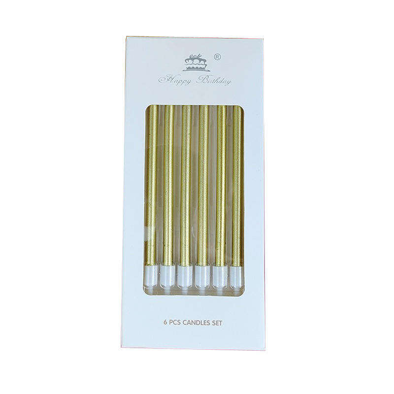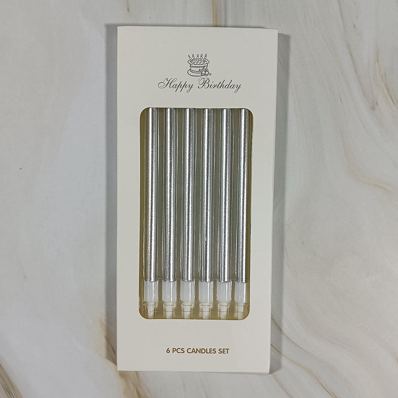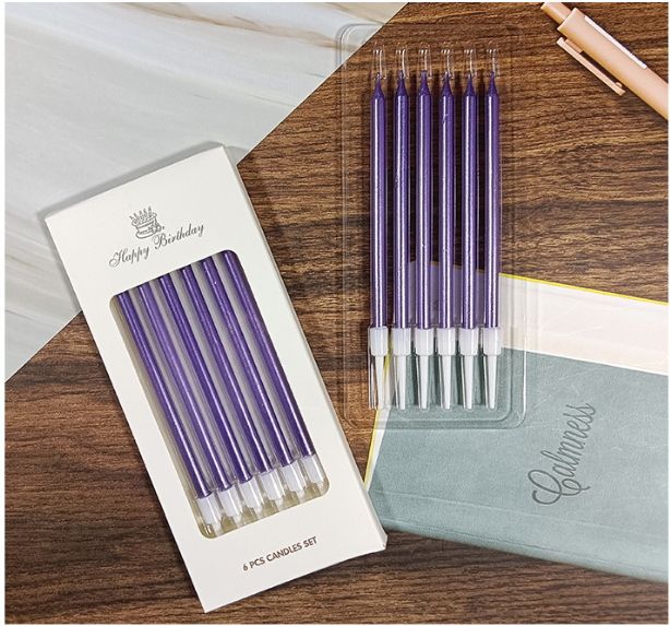 The long and thin metallic candles are a unique choice for birthday cakes. They come in individual packaging and are available in various colors such as red, green, pink, purple, silver, and rose gold. Made of paraffin wax, most of them are smokeless and non-toxic, making them safer to use.
