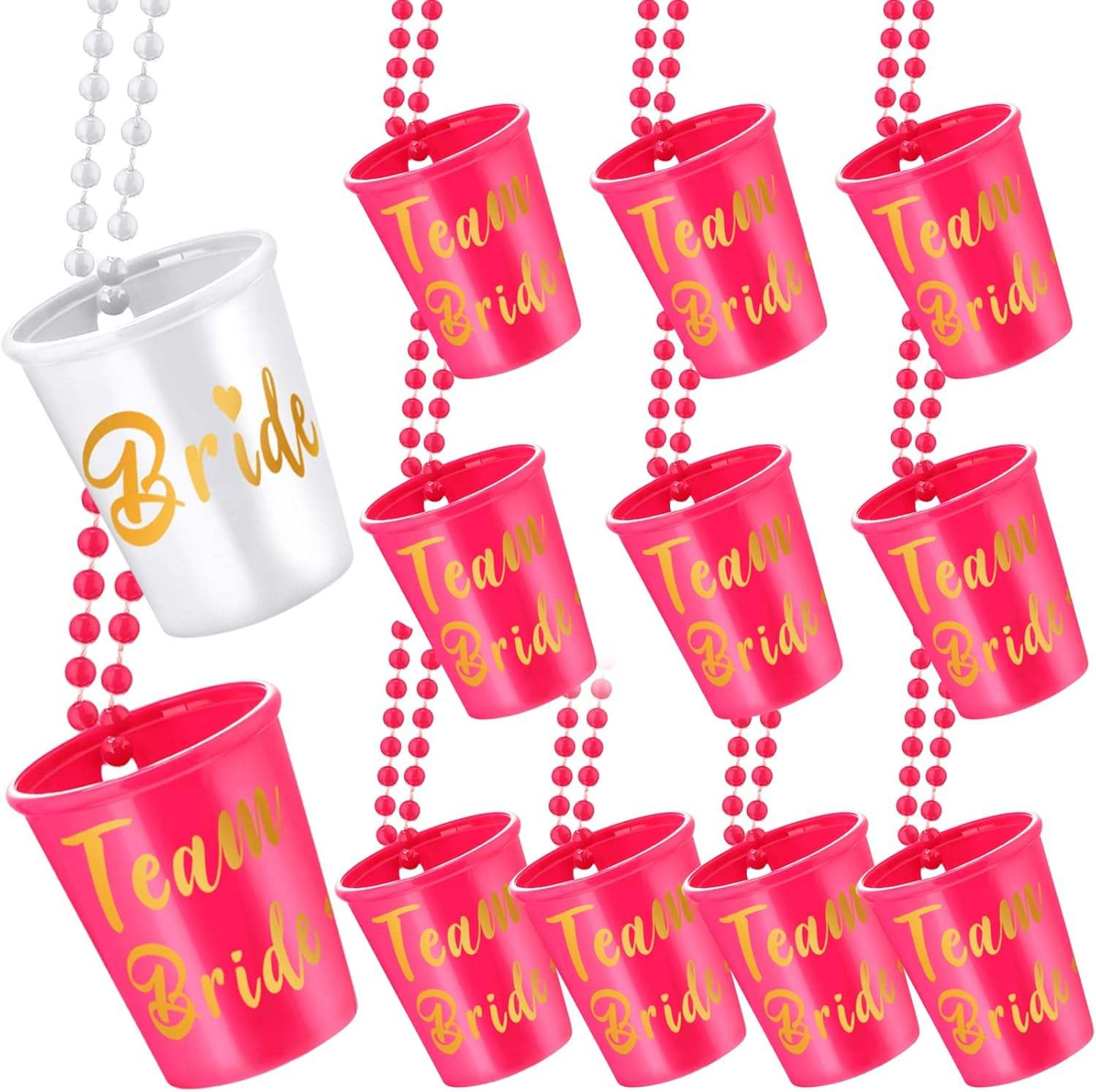 Bride beaded cup is paired with a beaded necklace string, which can be freely hung around the neck, freeing up your hands. You can have fun at the party. The cup is made of durable plastic material and there is no need to worry about it breaking. It can be reused and is available in red, white and black colors. It is specially designed for the bride’s bachelor party and is very popular.