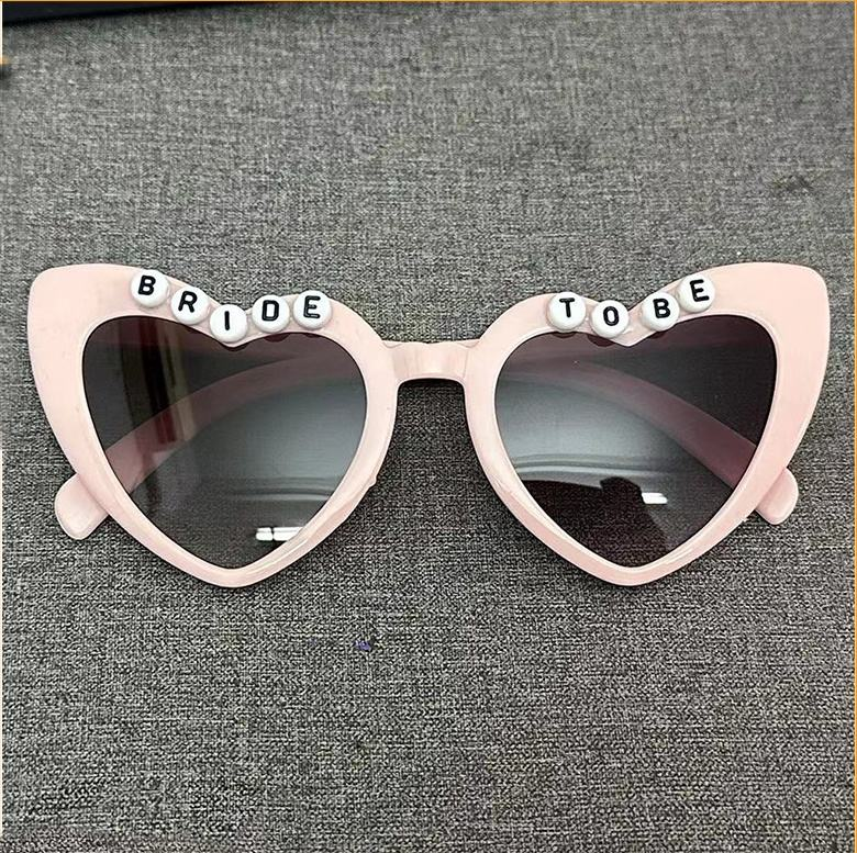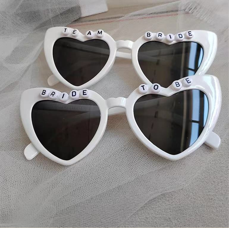 These bride glasses are available in white, black and pink, with dimensions of 15*15*5cm. They are usually made of lightweight plastic, the lenses provide basic sun protection, and are comfortable to wear without pressing on the nose. They are mainly used for bachelorette parties, wedding photography, bridesmaid group styling, and everyday outfits.