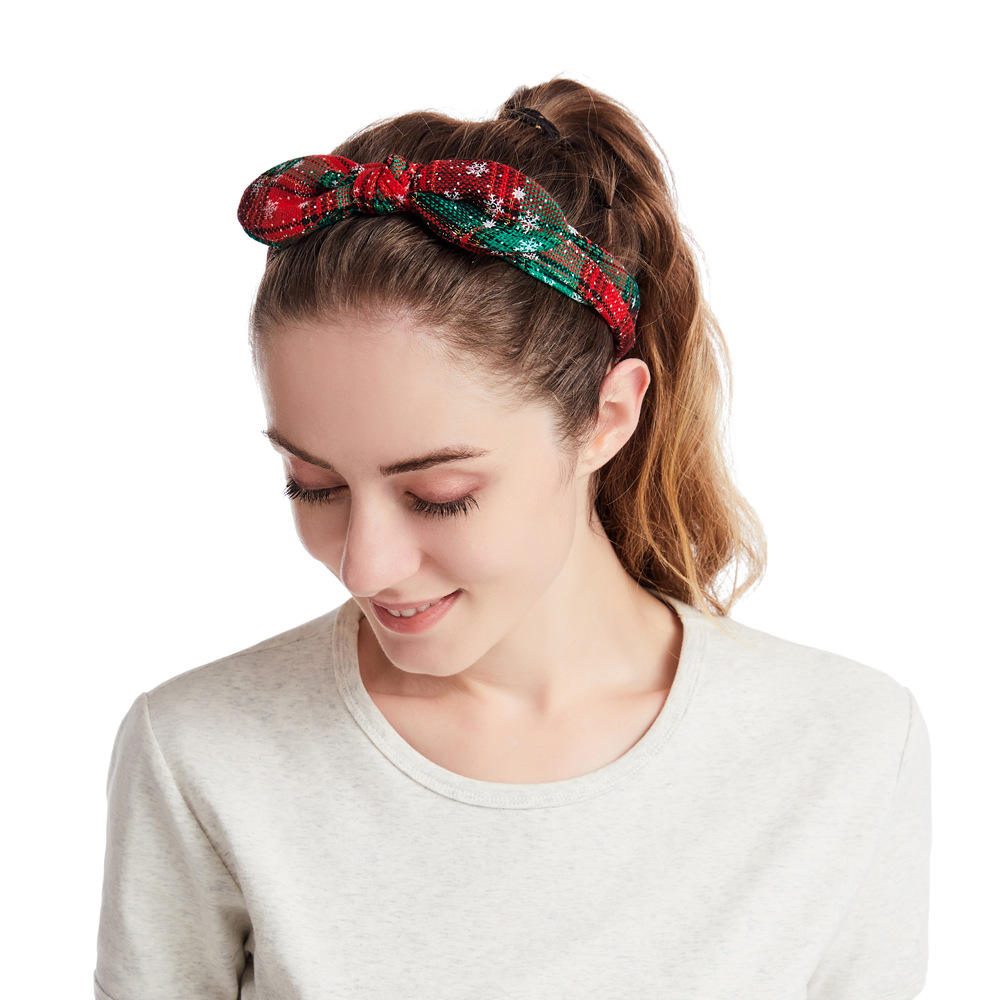 The most popular Christmas bowknot hair hoops, sized 24*3cm, feature bowknot details that add a sweet element, fashionable and cute. The elastic design fits most head sizes, and we can provide customization services according to your design.