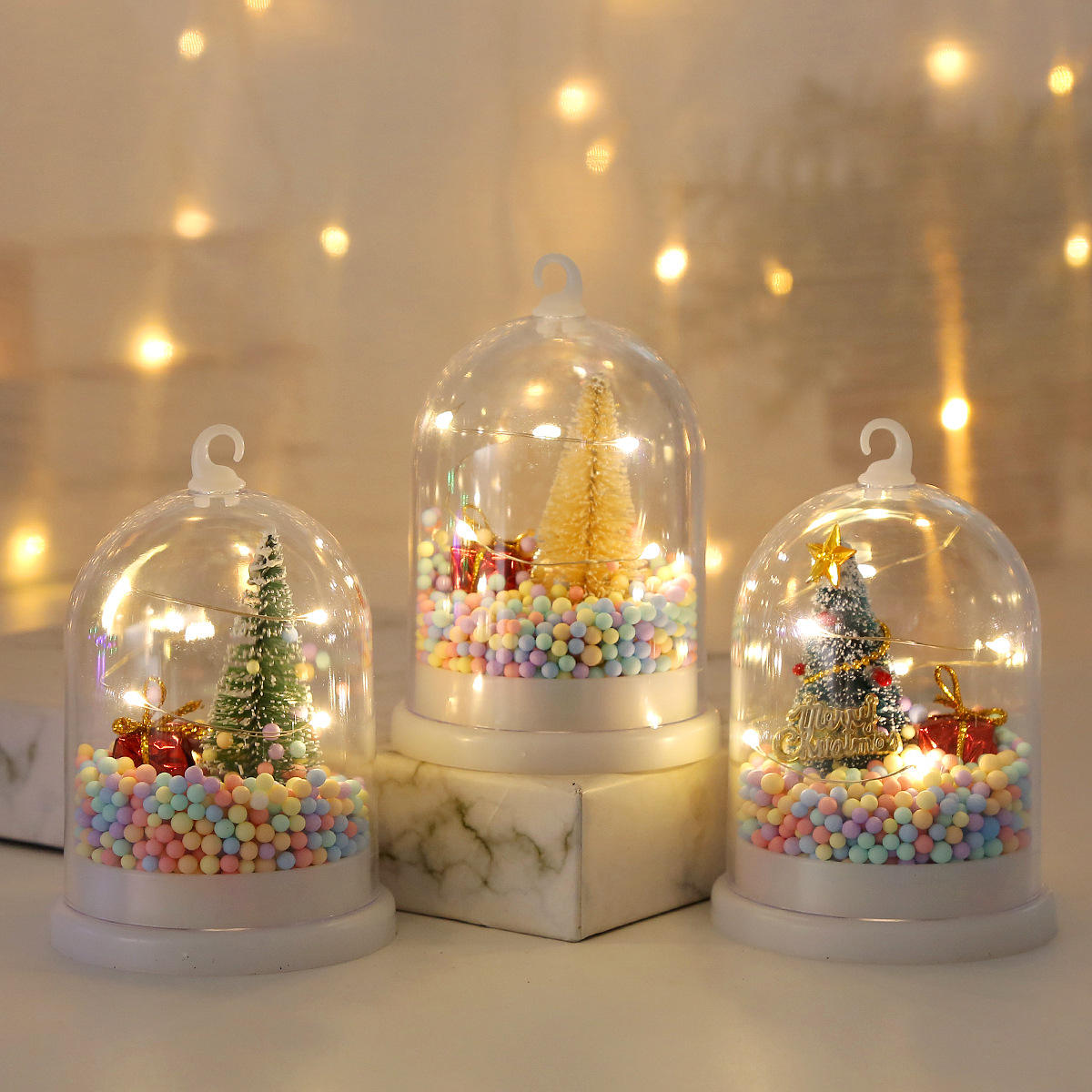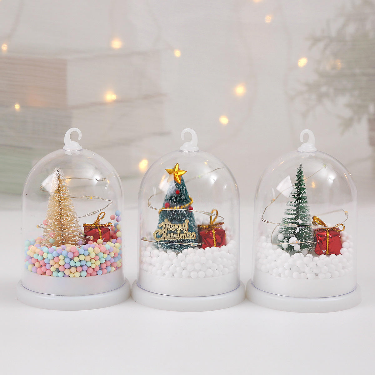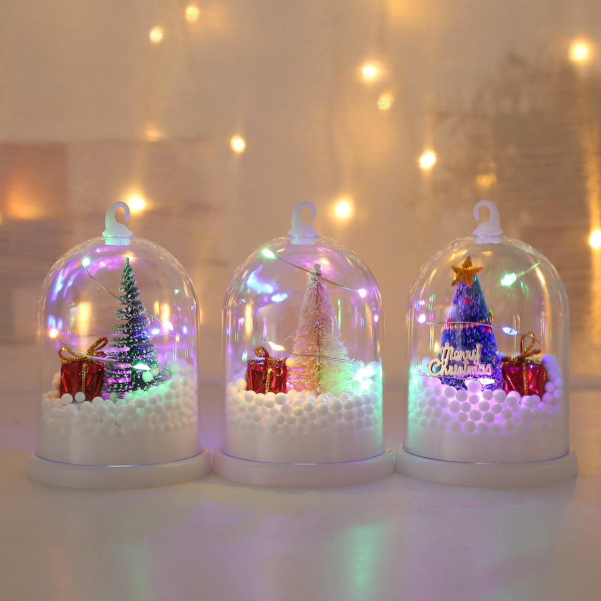 I think no one can resist this christmas glowing nightlight decoration, which features a mini Christmas tree, small gift boxes, and colorful foam ball decorations inside. It has a hook design on the top, so it can be placed on a table or used as a hanging decoration, with a convenient switch.