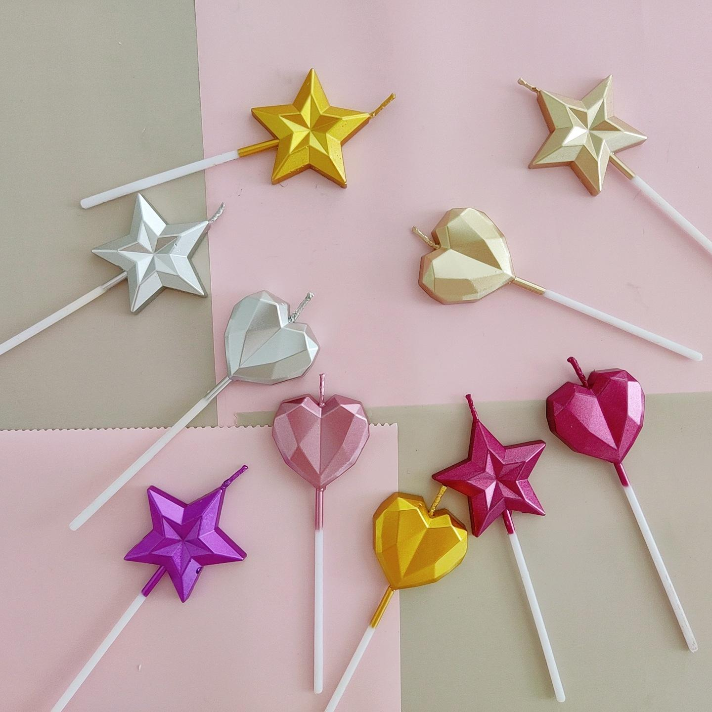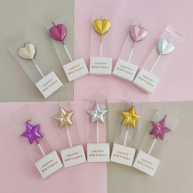 This birthday candle with a unique design of hearts and stars is very cute and exquisite. There are many colors to choose from: gold, silver, pink, and purple. The length is 3.5 cm and each one comes in an individual package. It is very suitable for use on birthdays, anniversaries, and parties.