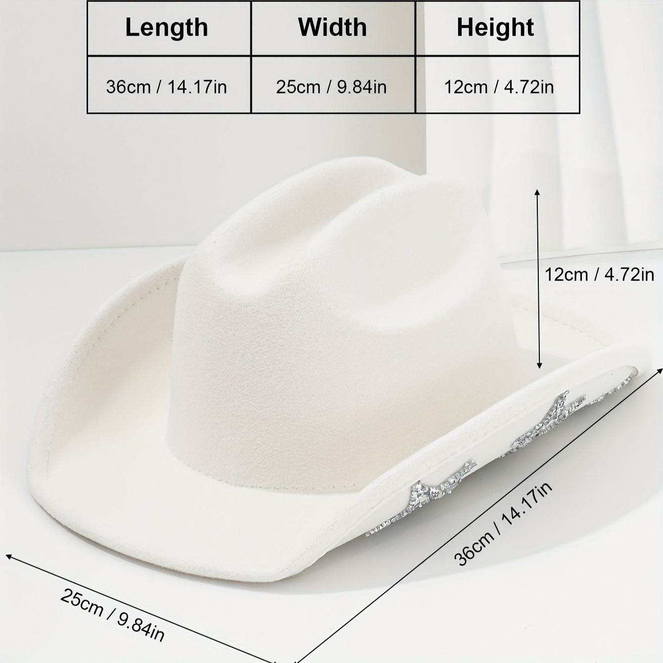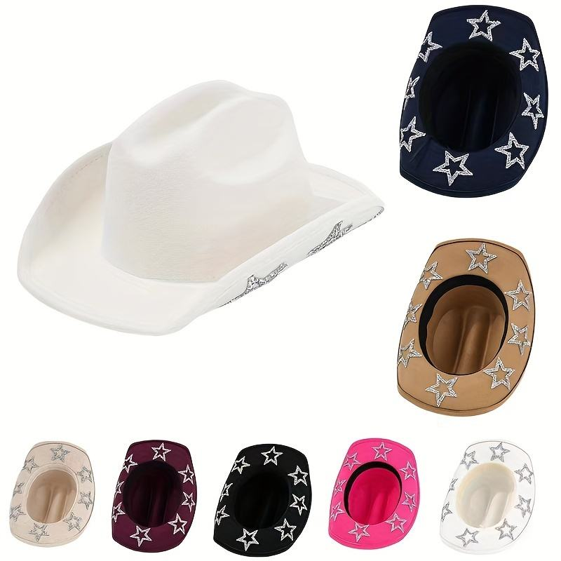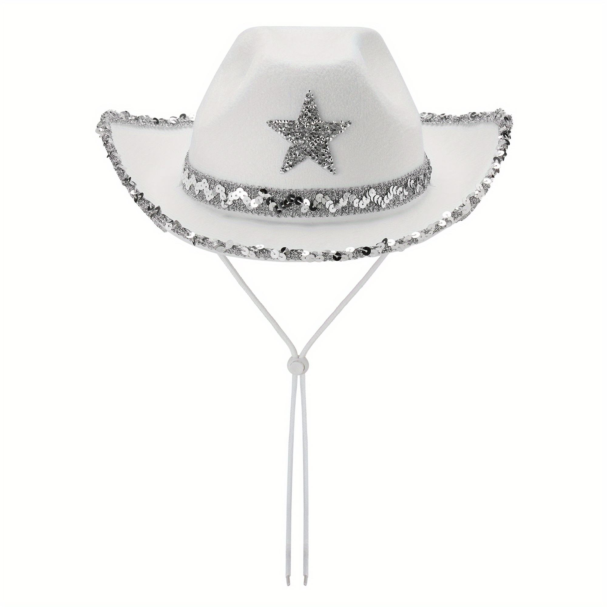 The cowboy fedora felt hat is available in multiple colours, with sequined edges on the brim that shimmer under light. It comes with white drawstring ties to adjust the fit for different head sizes, ensuring a more secure wear. Suitable for bachelorette parties and music festival looks.