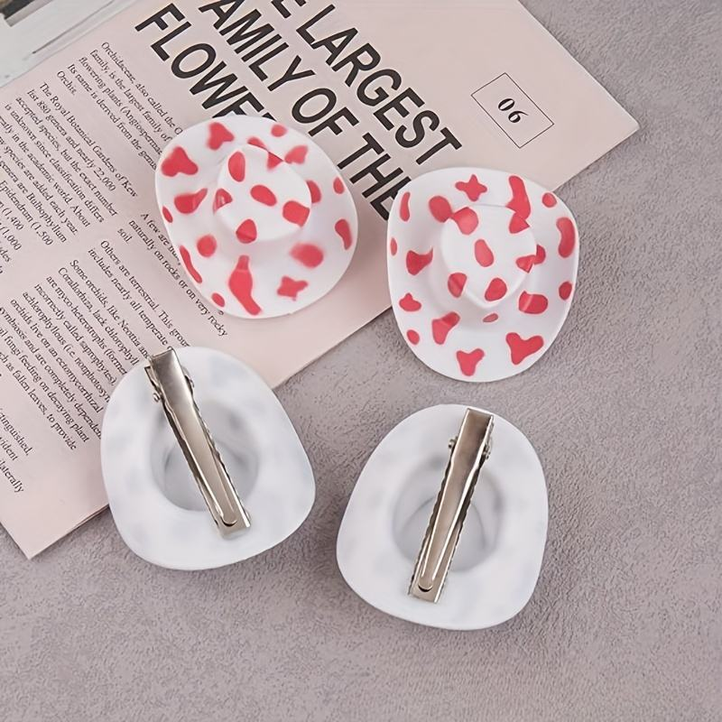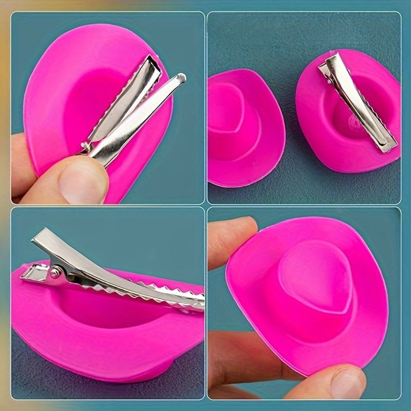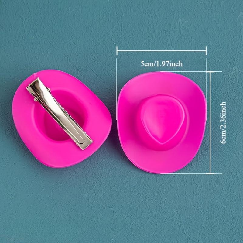The cowgirl hat hair clip is designed as a mini hat, measuring 5*6cm, available in multiple colours including pink, white, brown and black. Made of durable plastic, portable, it is suitable for use at cowgirl parties and birthdays.