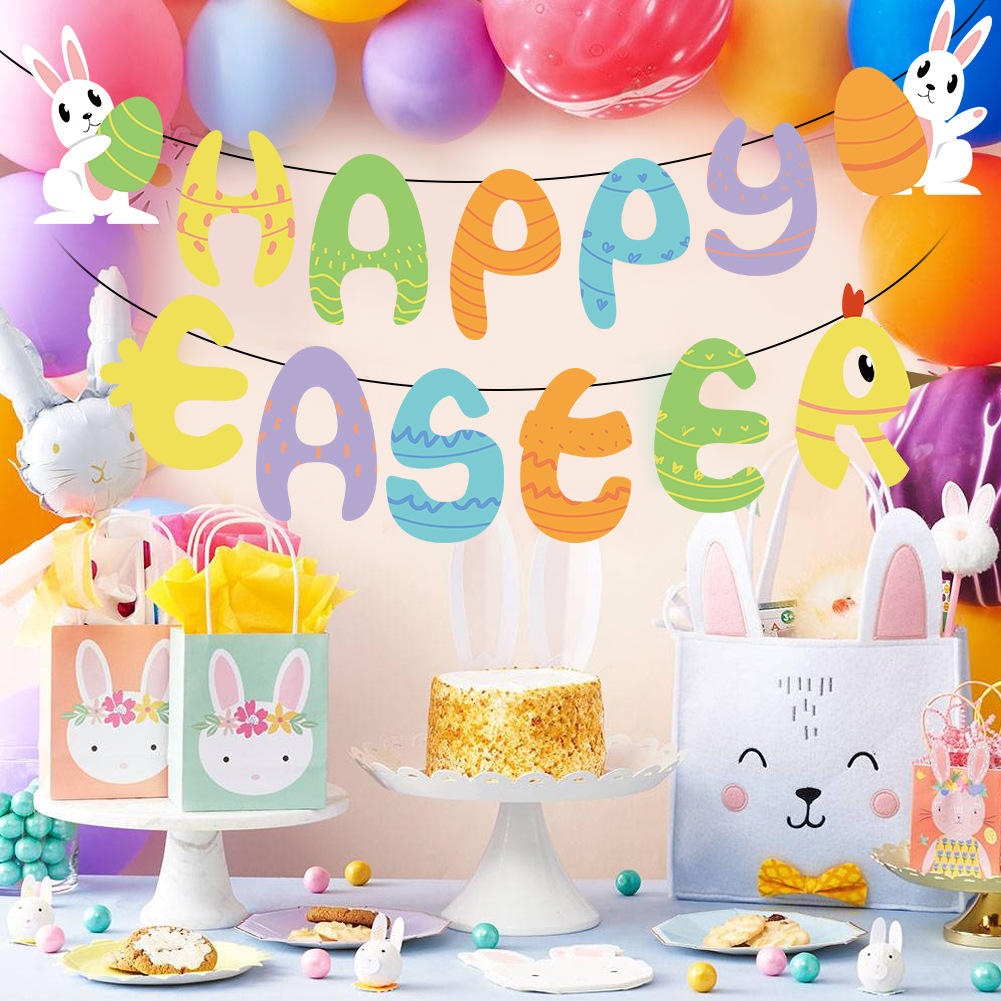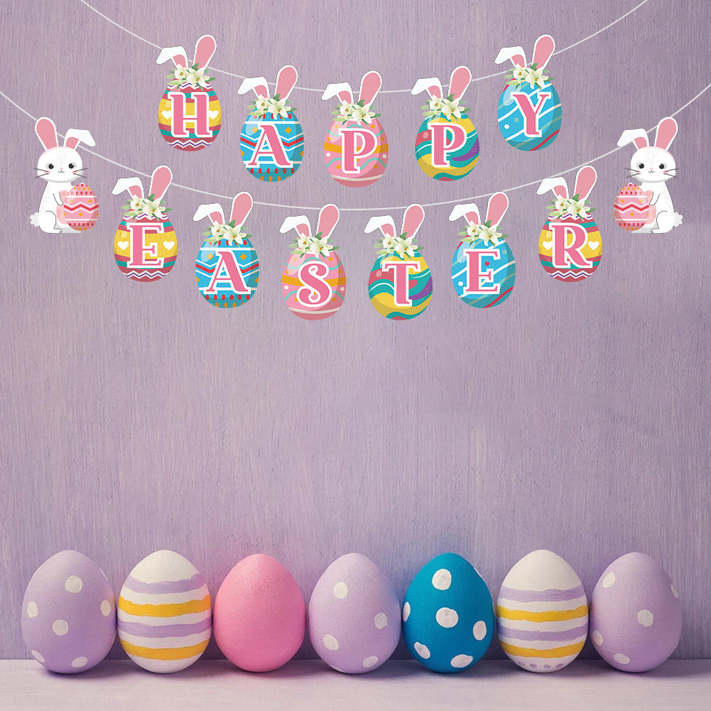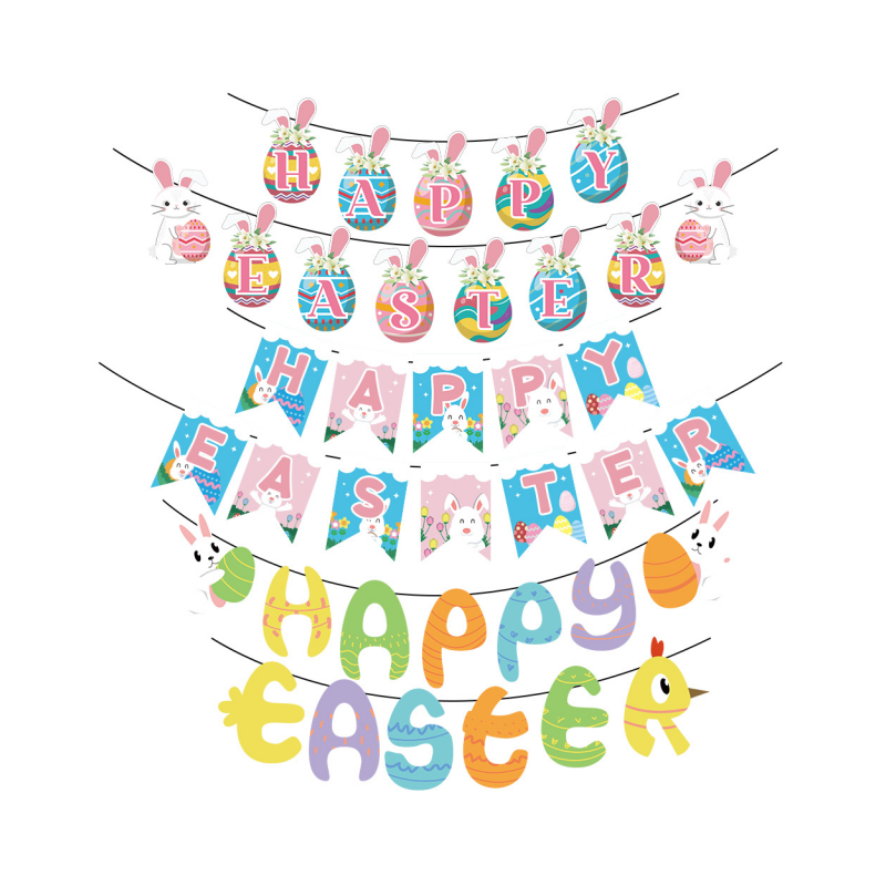 There are three styles of Easter cartoon paper banners to choose from. They can be strung together with thin strings to form a banner, which can be hung on walls, ceilings, or party venues for Easter home decoration and party setup, enhancing the festive atmosphere.