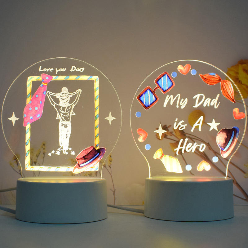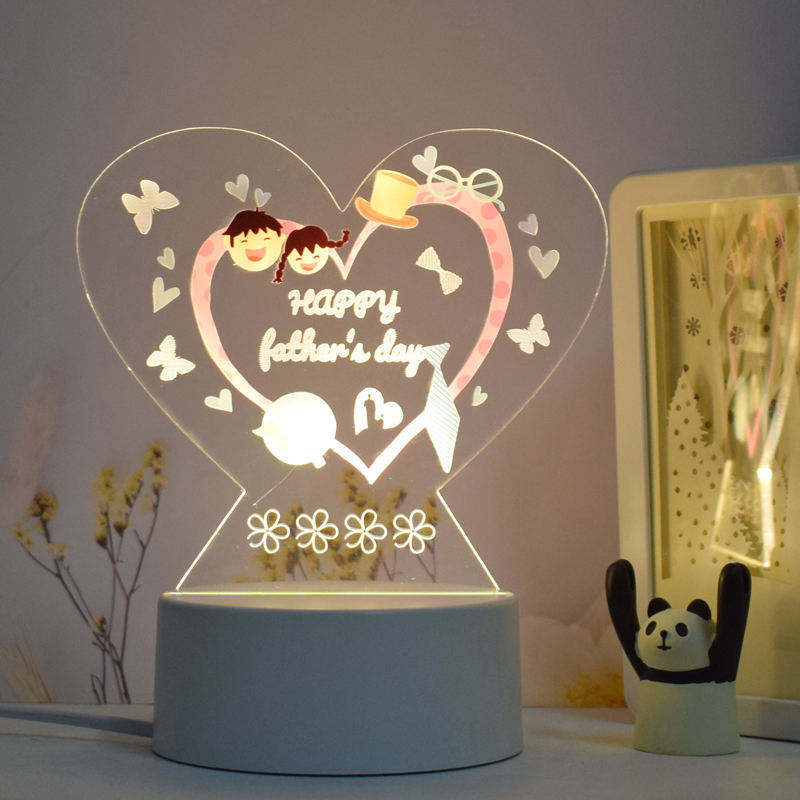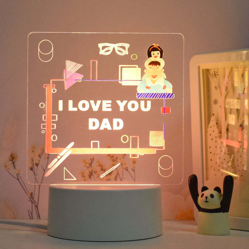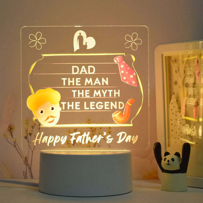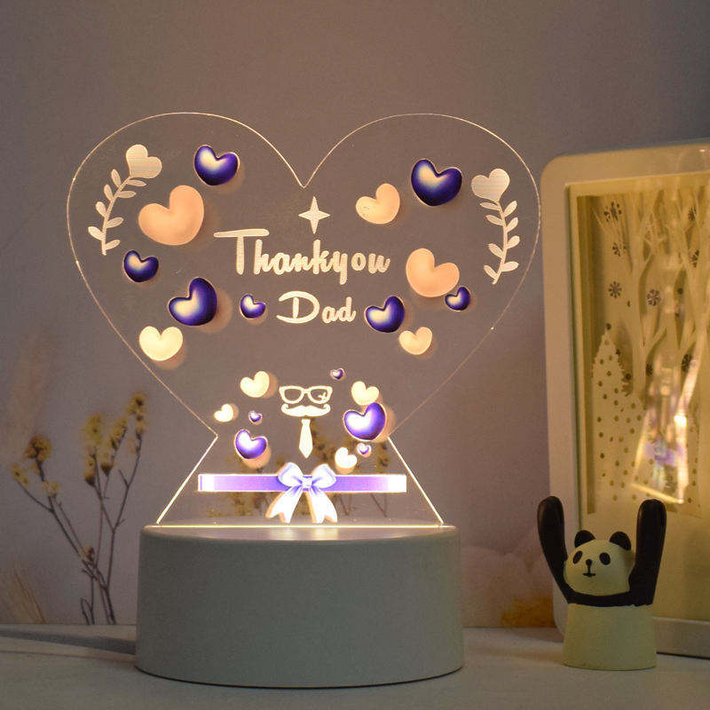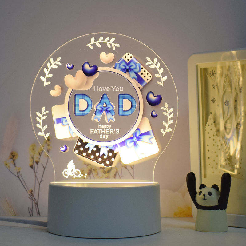 High-quality acrylic Father’s Day LED lights feature images of fathers, ties, hats, and hearts. With a built-in LED light in the base, the light is soft and not glaring when illuminated, making it suitable as a night light. Giving it as a gift can directly convey your love to your father.