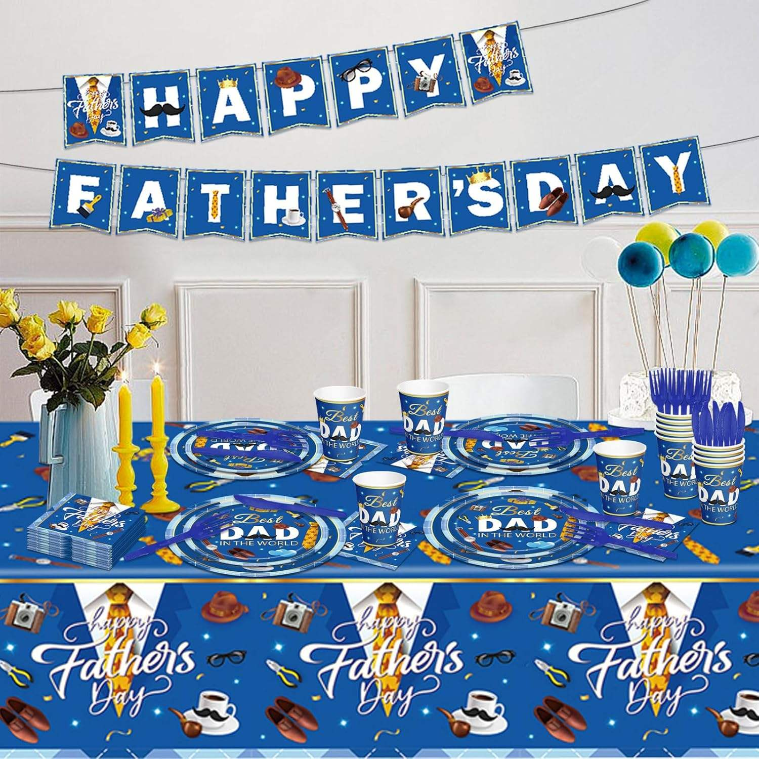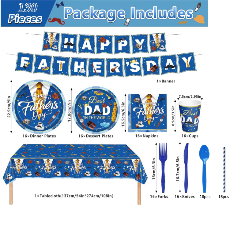 If you’re unsure what gift to give your father on Father’s Day, we recommend this Father’s Day Tableware Set. Each set contains 130 items, including letter banners, dinner plates, dessert plates, napkins, cups, tablecloths and tableware. It is a disposable product that is discarded after use and does not require cleaning. It is simple and convenient. The main color is blue, featuring patterns of ties, beards and tools, making it more in line with the theme of Father’s Day and allowing your father to enjoy a warm dining experience.