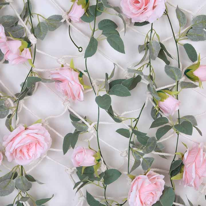 This is a flower garland artificial rose vine, made of pink roses and green leaves. It can replace real flowers to create a long-lasting decorative effect. The vine is flexible, allowing it to be wrapped, hung, or laid flat, and it is reusable. It can be used as wall or table decoration, as well as for party backdrops and festive arrangements.