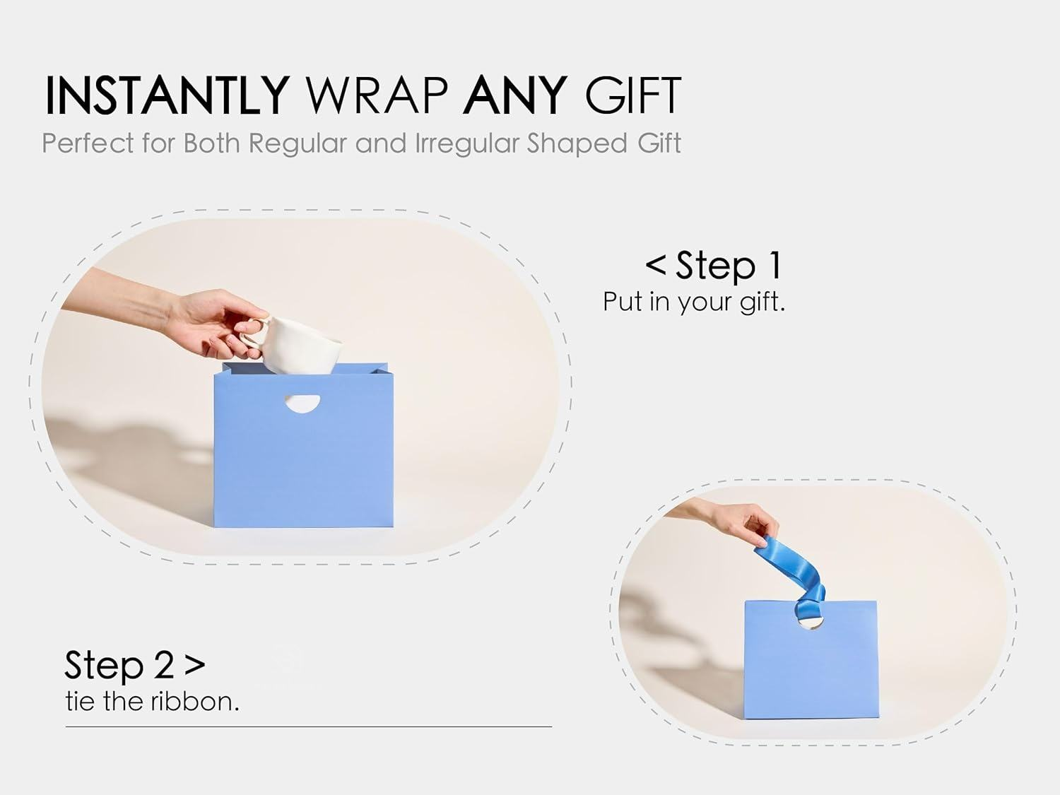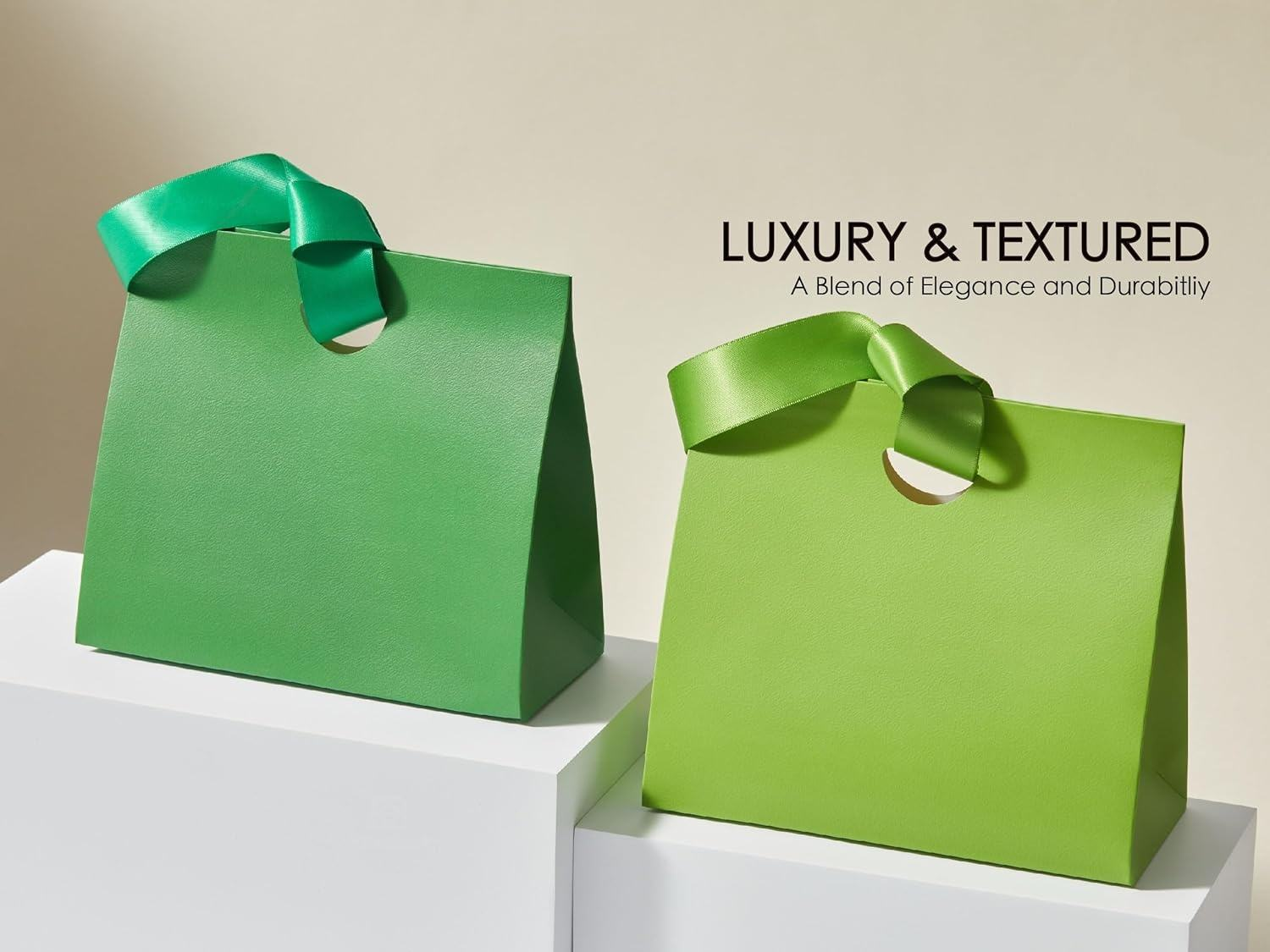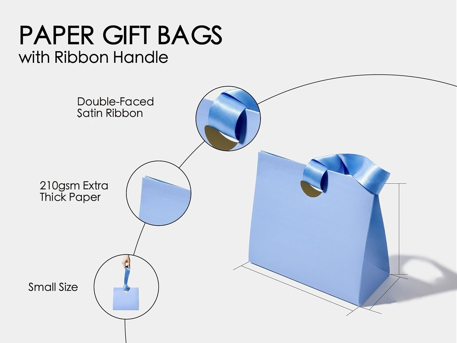 Gift bags with ribbon handles use thickened paper for packaging, making them more durable and less prone to deformation than ordinary paper bags. The double-faced satin ribbon is smooth to the touch and comes in a variety of solid colours, including pink, red, yellow, green and blue, capable of holding any gift, combining practicality with decorative appeal.