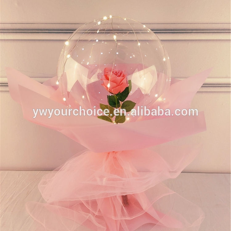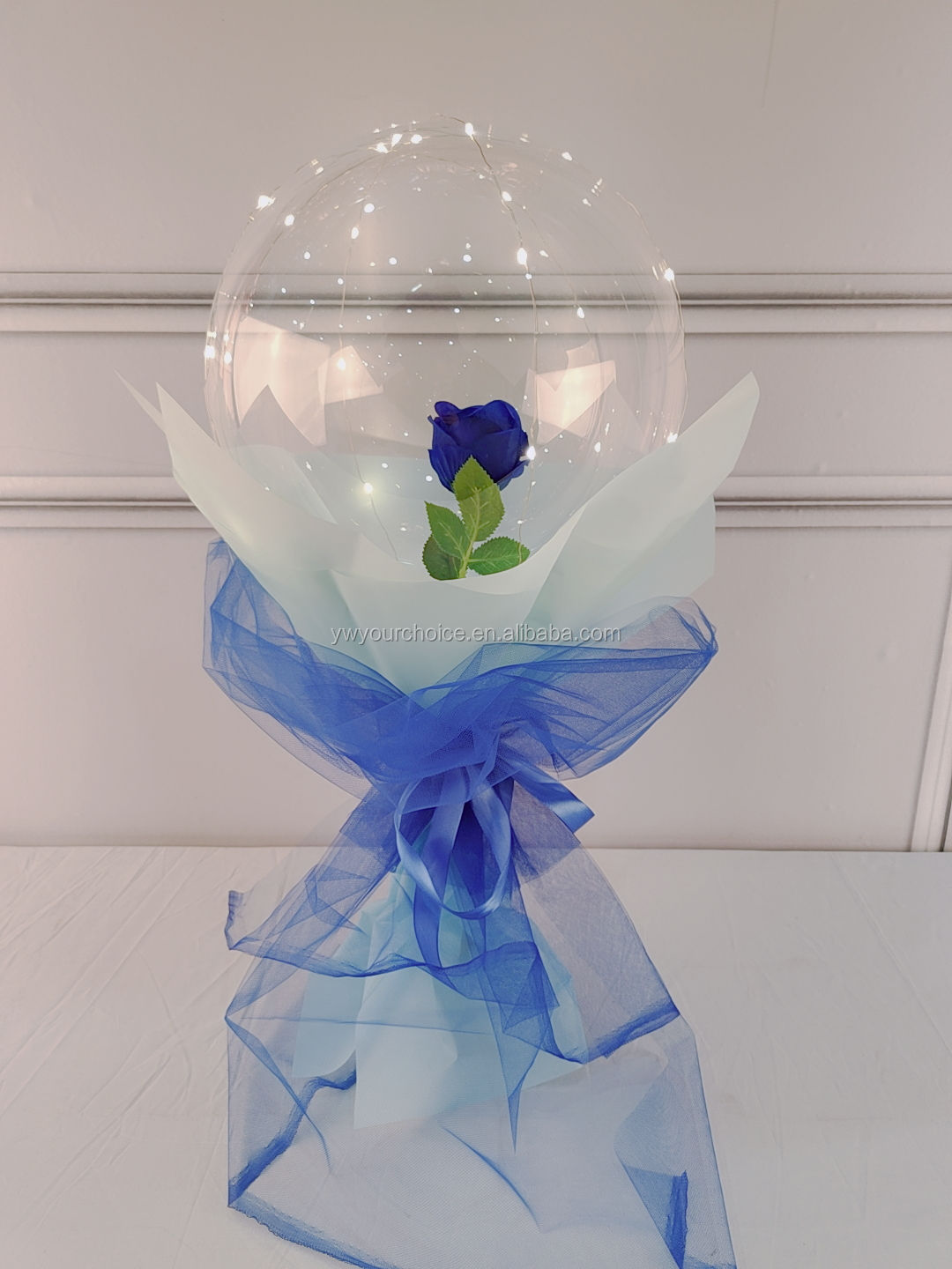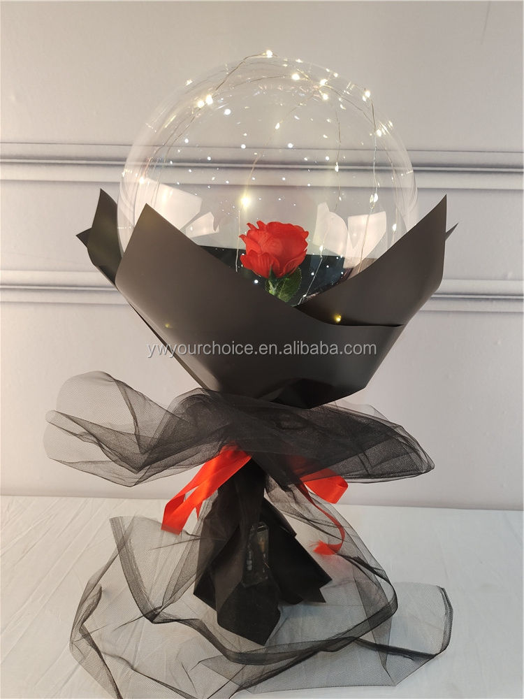 This is a glowing ball rose bouquet, with a transparent spherical cover as the main body, containing a realistic preserved rose inside. The rose comes in red, blue, pink, and champagne colours, and is equipped with LED warm lights. The overall design is delicate and magical, making it especially romantic when lit at night. It is suitable for occasions such as Valentine’s Day, proposals, and birthdays, and can easily touch the recipient.