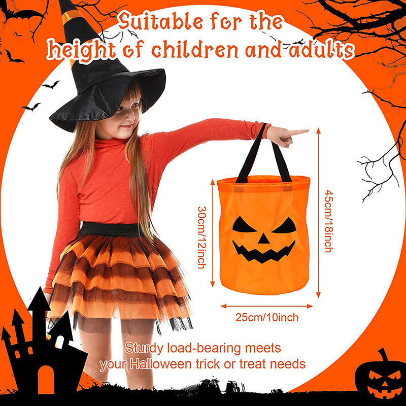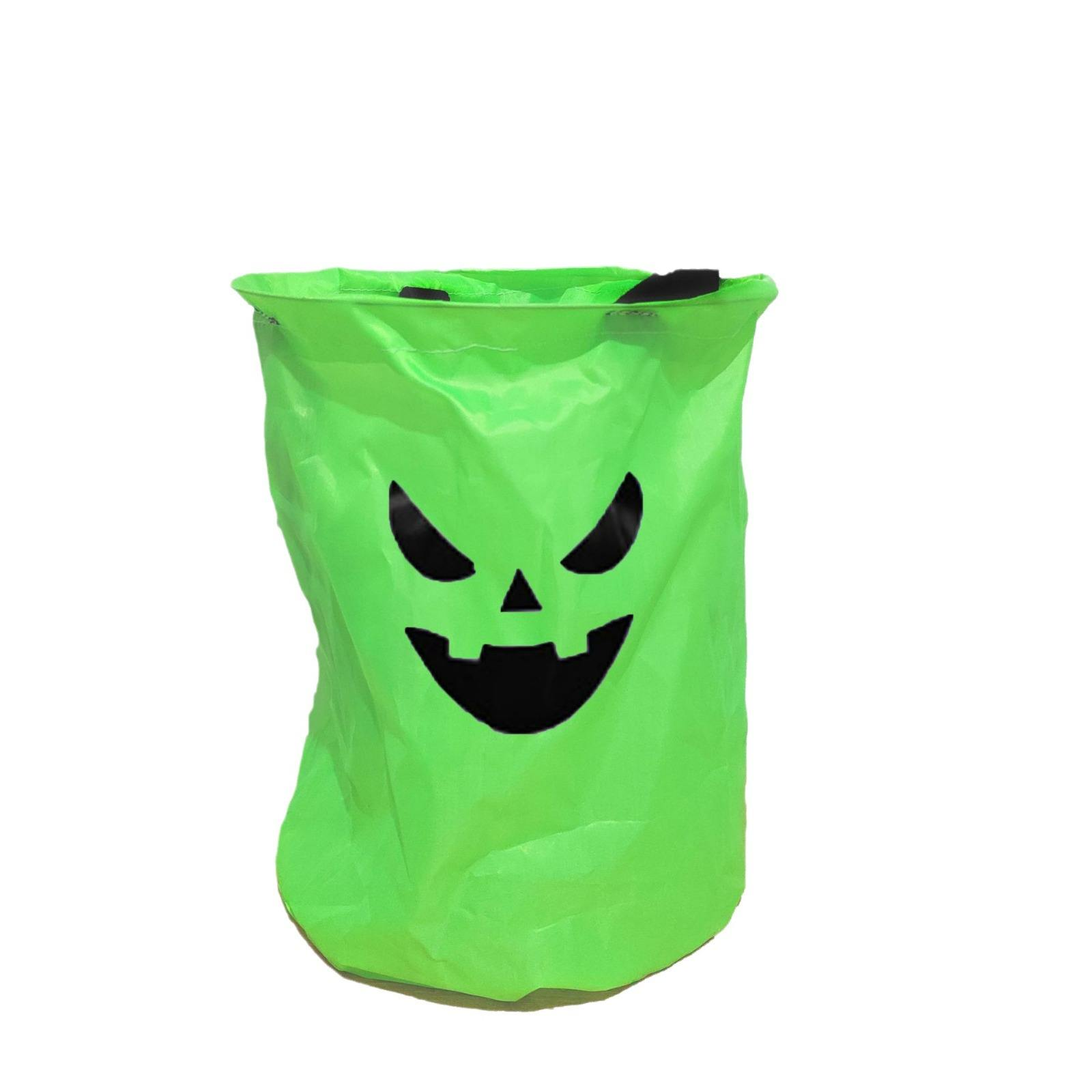 This popular LED light halloween bag features a classic pumpkin ghost face design, measures 25*30cm, has ample capacity and good load-bearing capability, suitable for collecting sweets and carrying small items. It comes with a black handle, easy for both adults and children to carry.