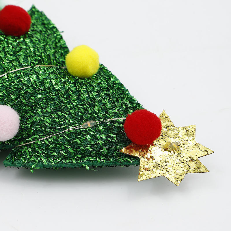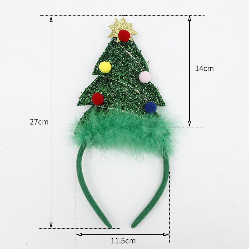 Lighted Christmas headband with LED lights, featuring a stretchable Santa hat and Christmas tree pattern, available in red and green, suitable for Christmas and various holiday parties.
