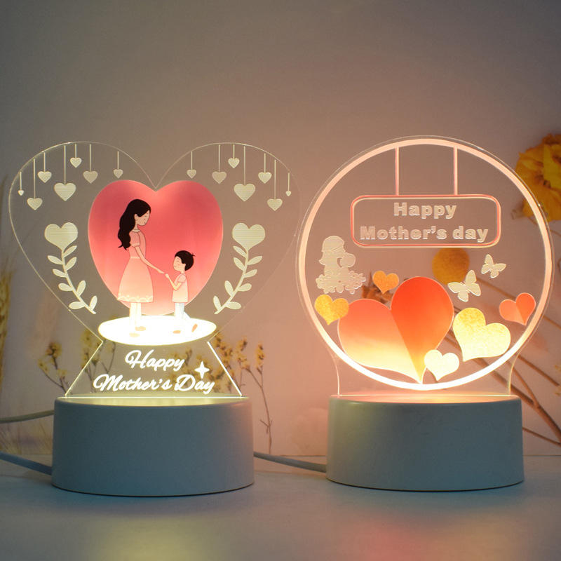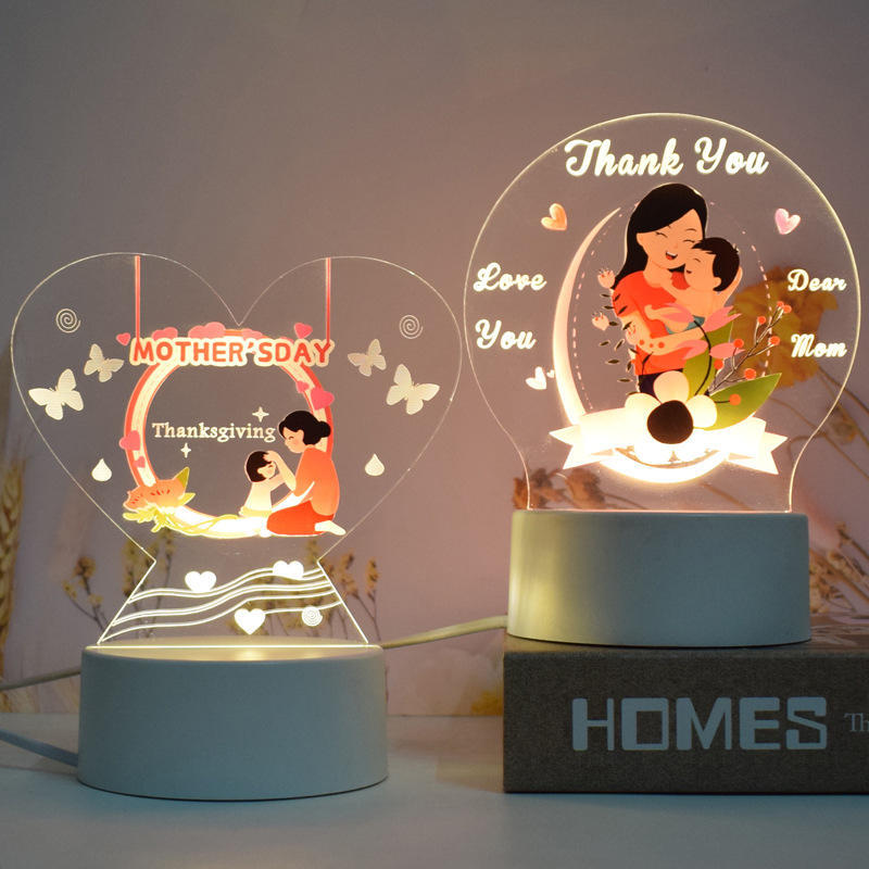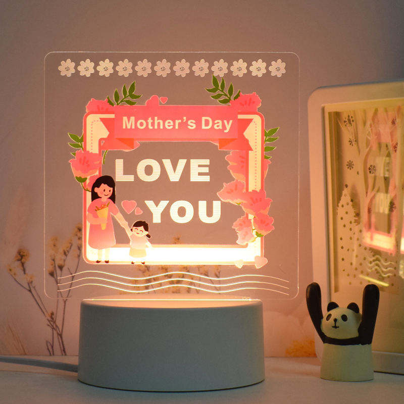 This acrylic Mother’s day LED light is equipped with a simple matte base and is fitted with low-power LED bulbs. The light is soft and not dazzling, and it has a warm color tone, creating a cozy atmosphere. It is very convenient to use. The text on it is filled with deep love for the mother. Whether placed on the bedside of the mother’s bedroom, on the coffee table in the living room, or in a corner of the desk, this small night light can make her feel your presence and care.