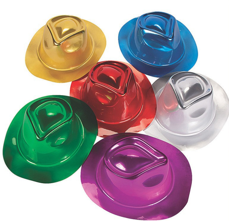 Party hats with a size of 56-58cm, made of metallic glossy material, available in green, white, yellow, red, pink, blue, and purple, bright in colour, suitable for both men and women, waterproof, durable, and non-toxic.