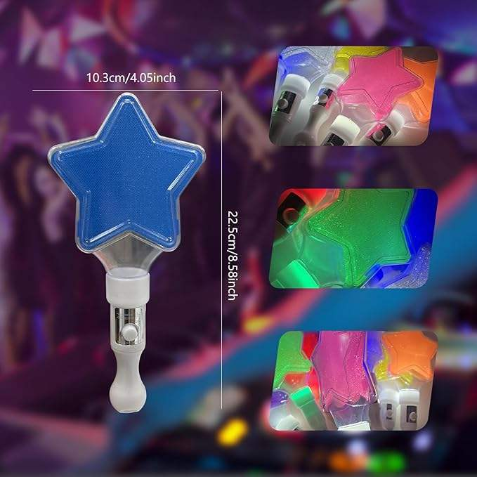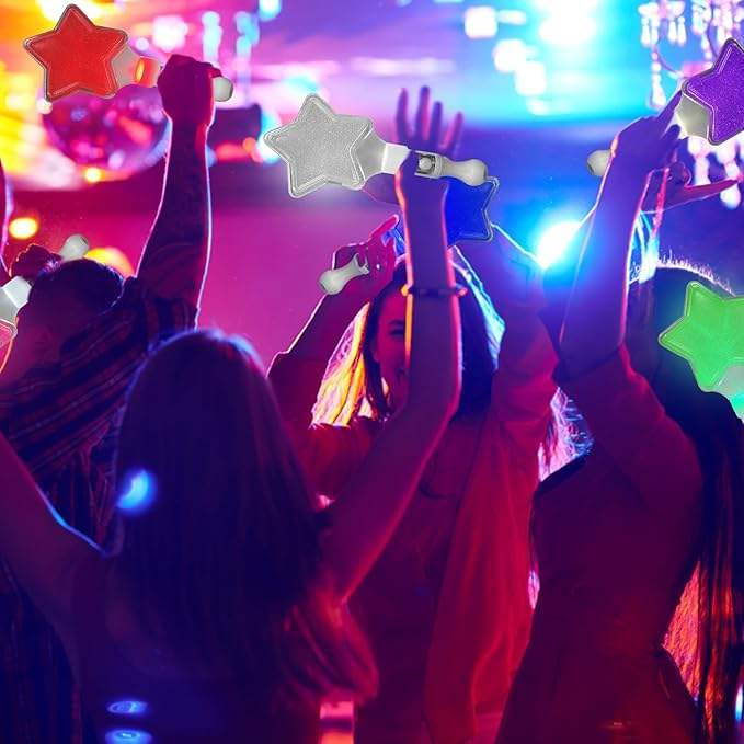 Plastic pentagram glow sticks are suitable for concerts, birthday parties, weddings, dances, and other occasions. They can be used for interaction, cheering, or decoration. The handle has a switch button, making it easy to operate. They can be hung or held, and are lightweight and easy to carry.