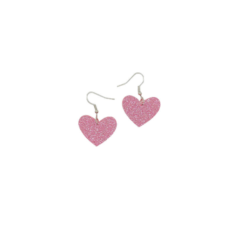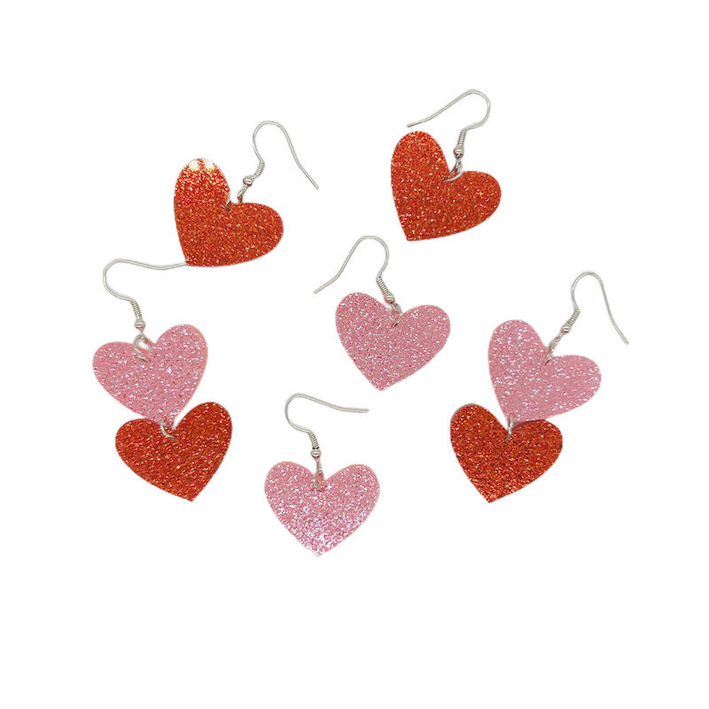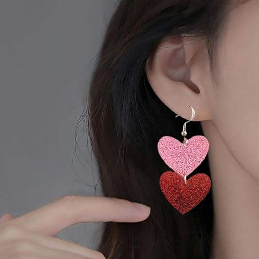 The new fashion small heart acrylic earrings feature red and pink colours, made with glitter material to create heart shapes, available in single heart and double heart styles, suitable for Valentine’s Day dates, party looks, or as a small gift.