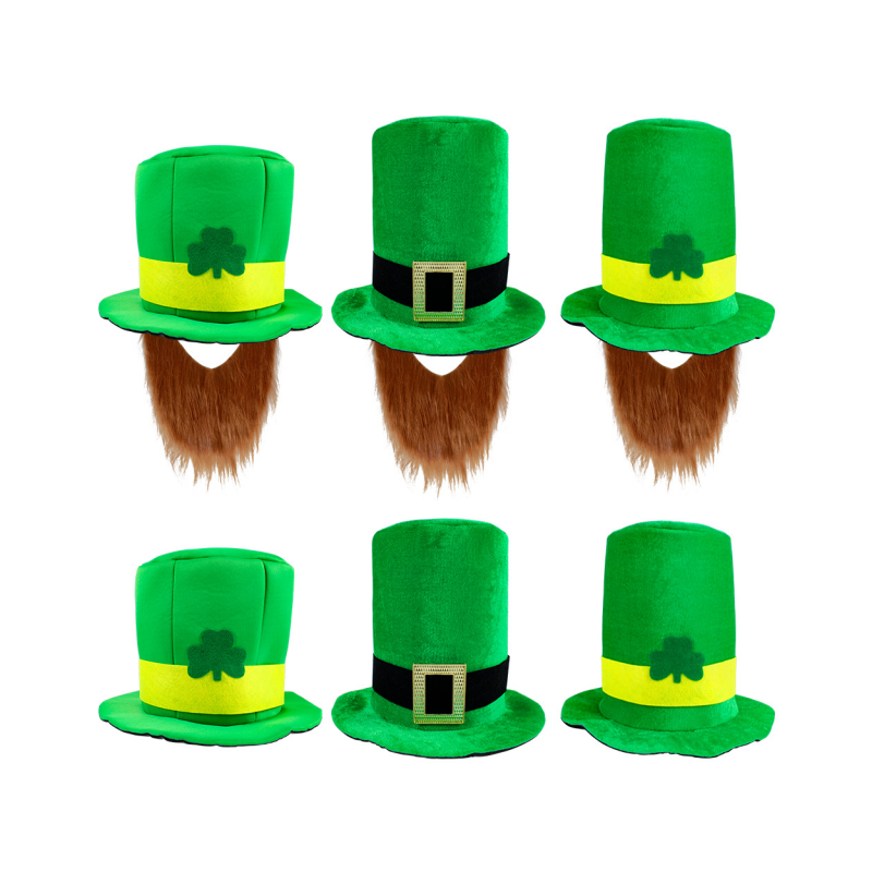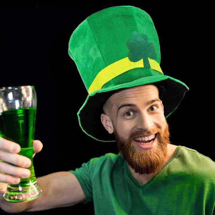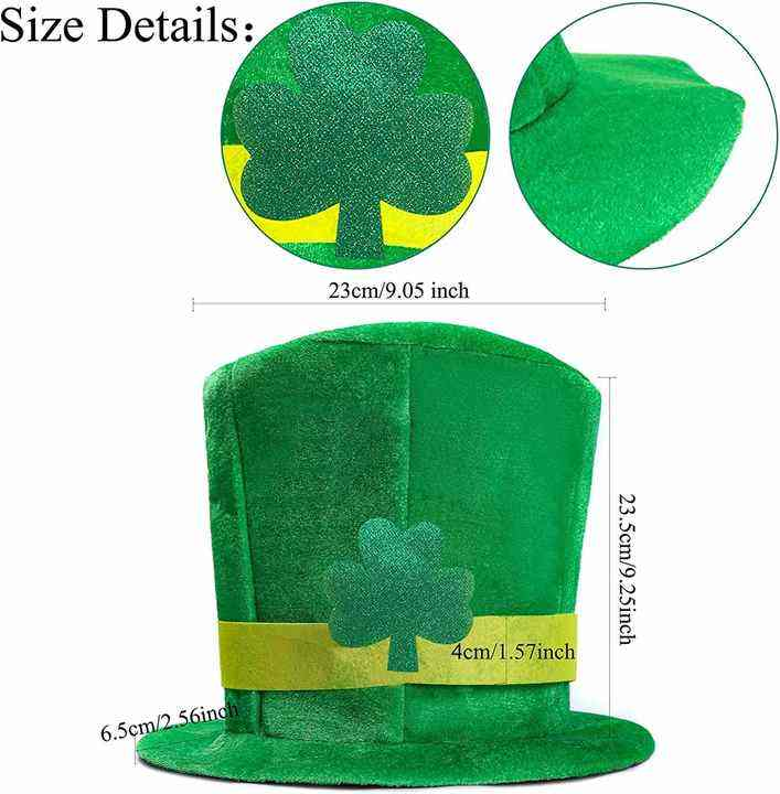 This green velvet St. Patrick’s Day top hat is of high quality, lightweight and comfortable, with brown plush moustaches attached underneath the hat, creating a playful ‘little leprechaun’ effect when worn. It is designed as one size fits most, suitable for most people, and is perfect for holiday parades, themed parties and bar gatherings.